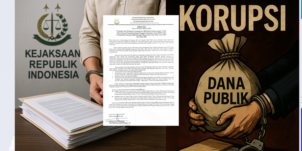 Penetapan tersangka dilakukan Penyidik Tindak Pidana Khusus Kejari Muara Enim pada Selasa (9/12/2025), setelah serangkaian penyidikan berdasarkan Surat Perintah Penyelidikan Nomor: PRINT-03/L.6.15/Fd.1/11/2025 tanggal 19 November 2025.