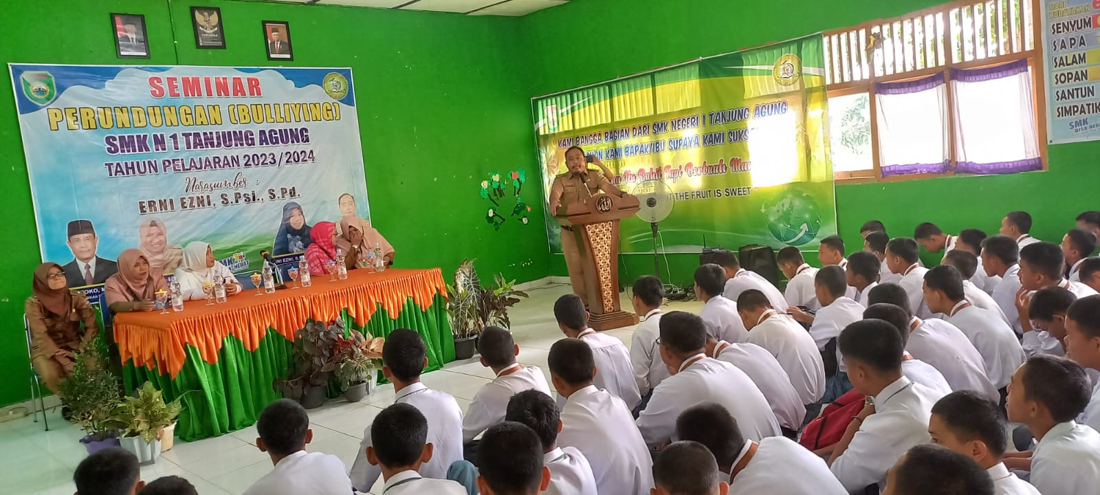 Enimpost.com, MUARA ENIM – Viralnya informasi dimedia sosial mengenai aksi perundingan atau Bullying yang dilakukan pelajar di salah satu sekolah di Pulau Jawa. Mendapat perhatian dari SMK Negeri 1 Kecamatan Tanjung Agung Kabupaten Muara Enim Sumatera Selatan. Sekolah negeri kejuruan itu melaksanakan kegiatan seminar mengenai aksi Perundungan, hingga penyimpangan seksual.