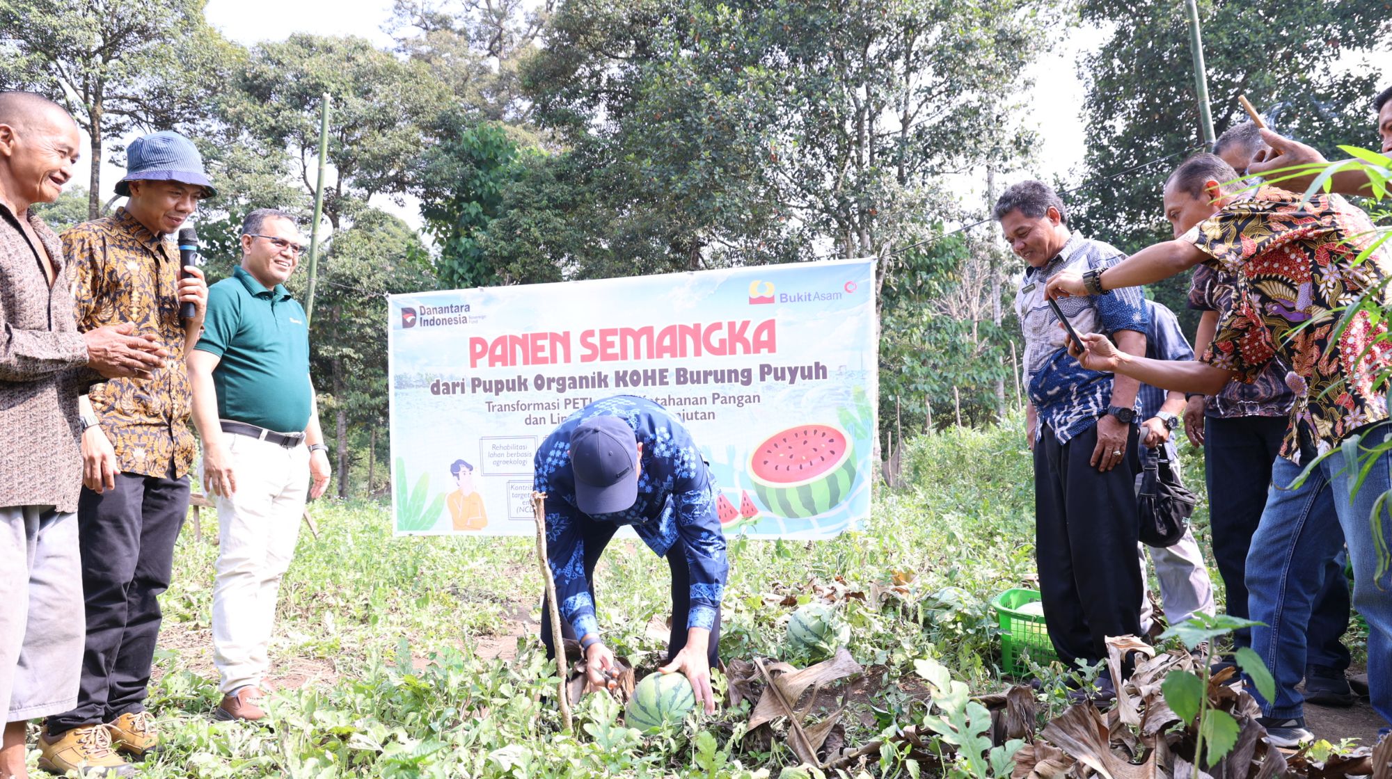 enimpost.com,MUARAENIM – Para peternak burung puyuh binaan PT Bukit Asam Tbk (PTBA) memanen semangka dari lahan bekas aktivitas Pertambangan Tanpa Izin (PETI) di Desa Darmo, Kecamatan Lawang Kidul, Kabupaten Muara Enim, pada Kamis (24/07/2025). Semangka tersebut ditanam menggunakan pupuk organik berbahan dasar kotoran puyuh (kohe), hasil dari sistem pertanian terpadu yang dikembangkan bersama PTBA.