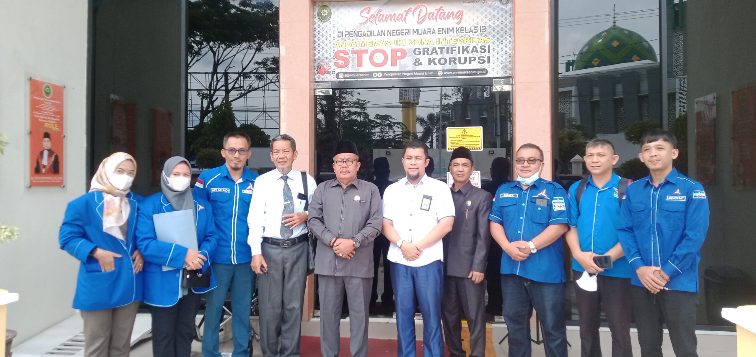 Enimpost.com,MUARA ENIM – Pengurus DPC Partai Demokrat Kabupaten Muara Enim mengajukan perlindungan hukum kepada Mahkamah Agung RI melalui Pengadilan Negeri (PN) Muara Enim, Senin (3/4/2023) siang. Kunjungan itu di terima langsung oleh Ketua Pengadilan Negeri Muara Enim Dr Yudi noviandri SH MH.
