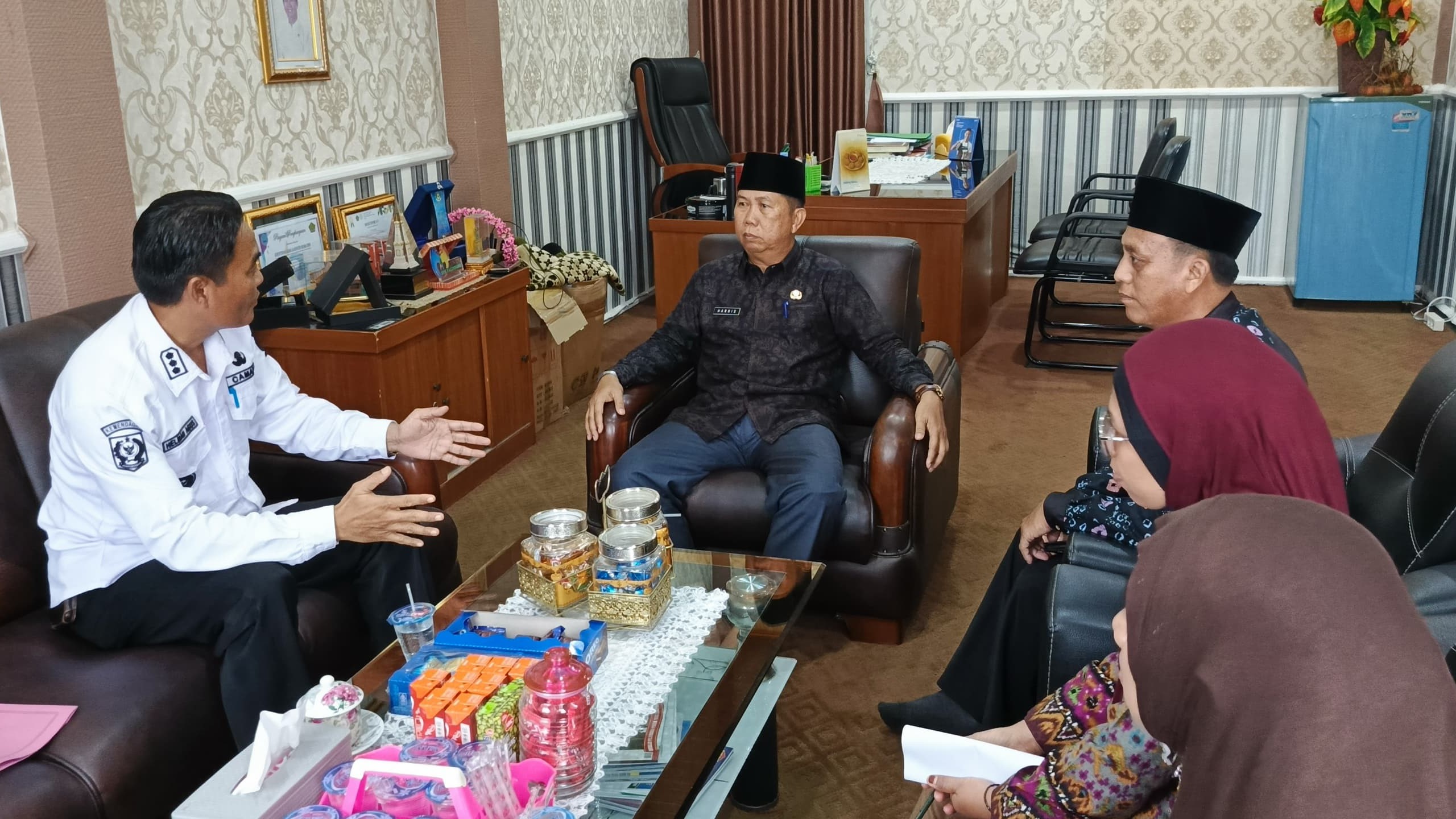 Didampingi Kepala Seksi Bimbingan Masyarakat Islam, Zairin, Harris menegaskan bahwa prioritas utama Kemenag saat ini adalah menjaga kualitas pelayanan publik, meskipun jarak tempuh masyarakat ke KUA induk relatif jauh.