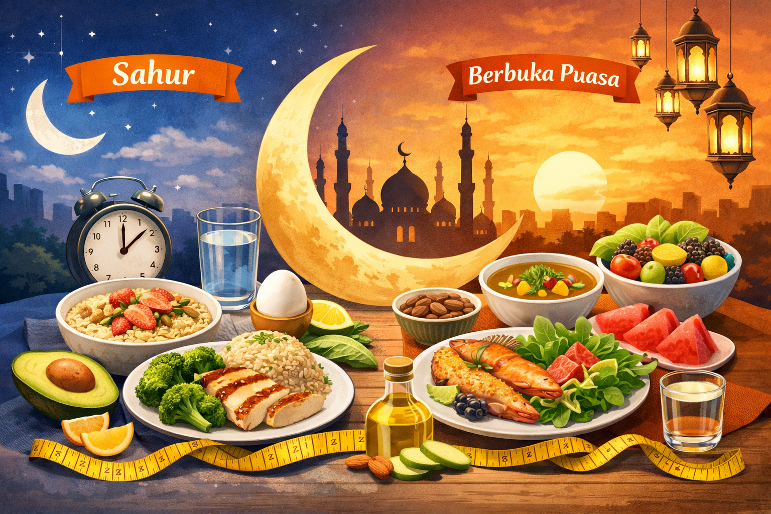 Menghindari makan terlalu larut malam, mencukupi kebutuhan cairan secara bertahap dari berbuka hingga sahur, serta tidak langsung tidur setelah makan besar menjadi bagian dari pola hidup sehat. Aktivitas fisik ringan seperti berjalan santai setelah berbuka juga dapat membantu menjaga metabolisme. Dengan perencanaan menu yang seimbang dan kebiasaan makan yang terkontrol, puasa Ramadhan dapat dijalani tanpa mengorbankan kesehatan. Diet yang tepat selama bulan suci tidak hanya membantu menjaga berat badan, tetapi juga mendukung stamina tubuh agar tetap optimal dalam menjalankan ibadah dan aktivitas sehari-hari.