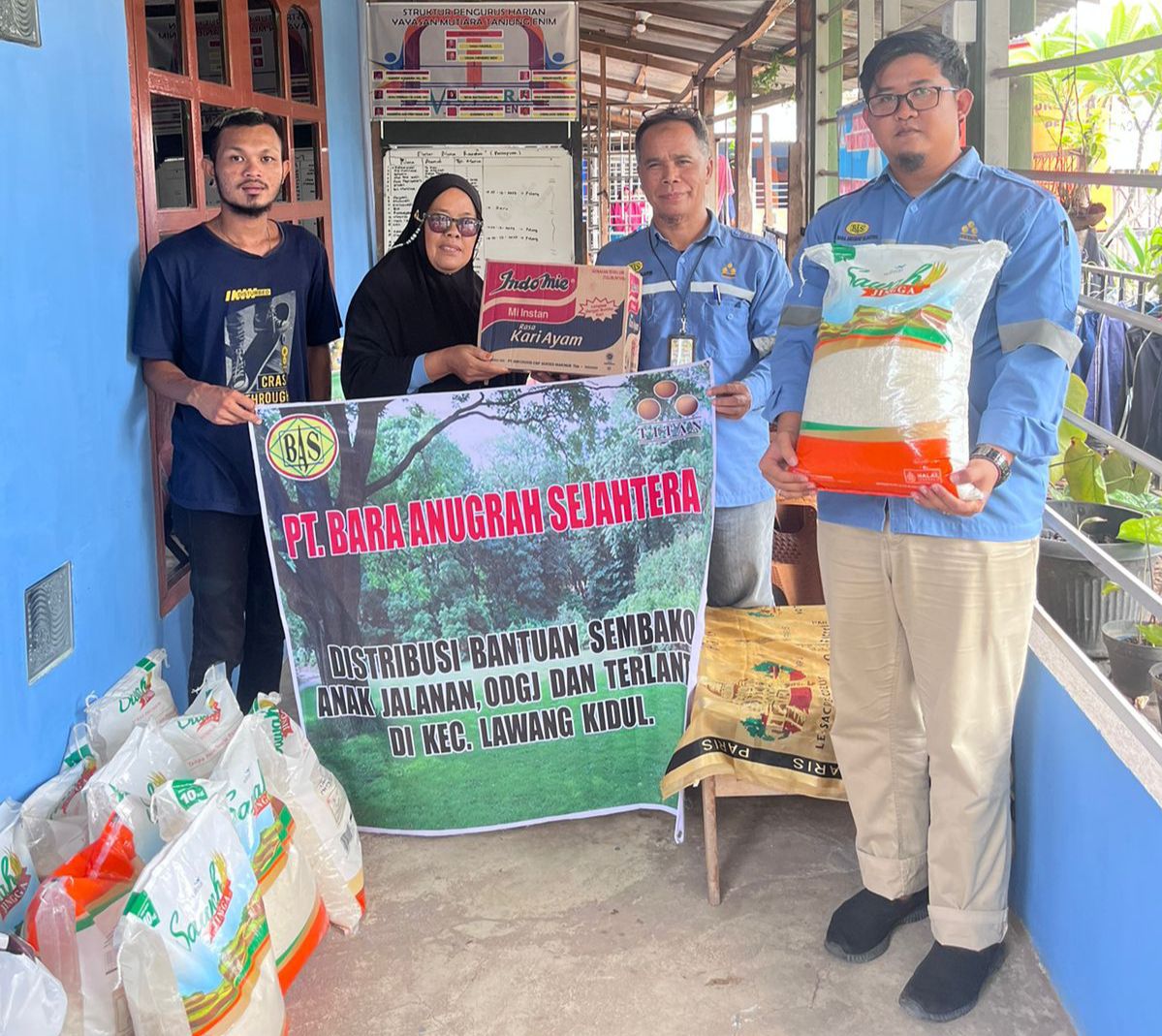 Bantuan PT.Bara Anugrah Sejahtera (Titan Group) berupa sembilan bahan pokok antara lain beras, gula, minyak, mie instan dan lain-lain diberikan masih dalam suasana Tahun Baru 2024 dan tutup tahun 2023.