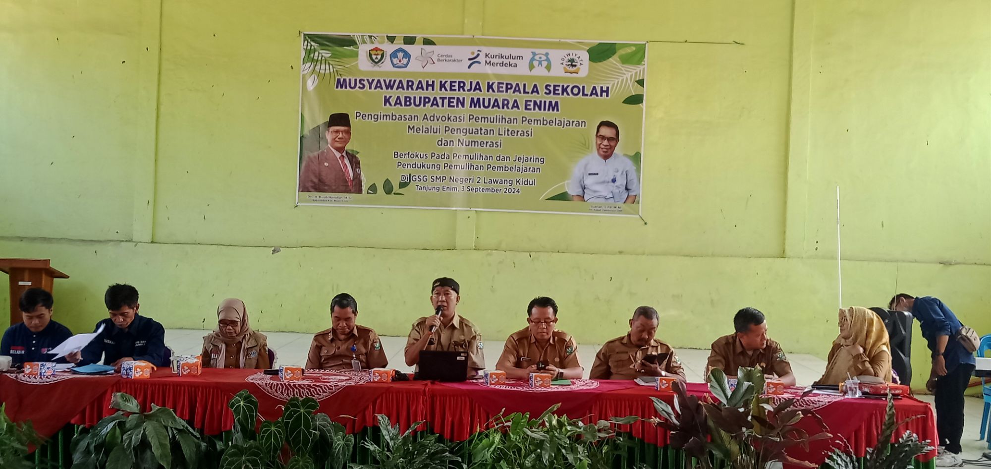 Enimpost.com,MUARAENIM – Musyawarah Kerja Kepala Sekolah (MKKS) SMP wilayah 1 Kabupaten Muara Enim menggelar Bimbingan Teknis (Bimtek) Literasi dan Numerasi di fasilitasi SMP Negeri 2 Kecamatan Muara Enim, Selasa 3 September 2024. Bimtek tersebut diikuti 32 Kepala Sekolah SMP, dan 9 guru yang ada di wilayah Semendo hingga Kecamatan Belimbing Muara Enim.
