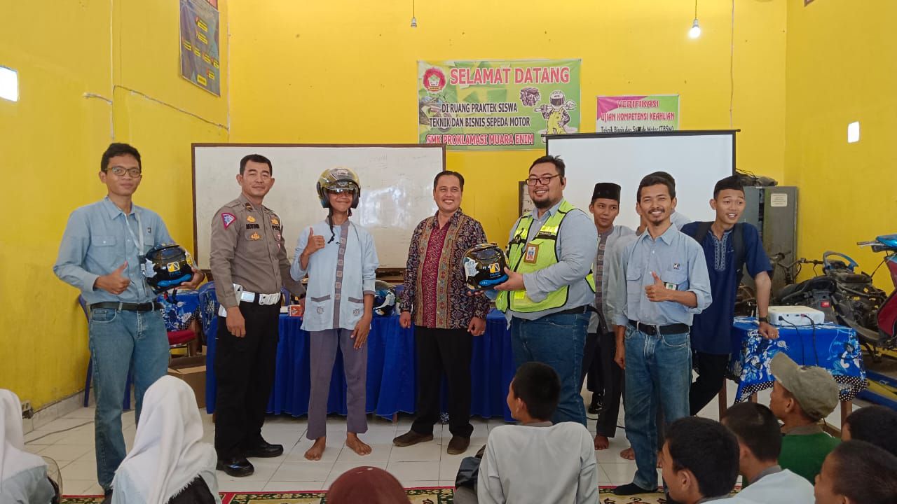 Turut hadir, CSR Departemen Head, Faizal Imron, didampingi CSR Officer Joko Budi Santoso, serta Devita Sirait. Pihak SMK Proklamasi dihadiri langsung oleh Obrian Riza selaku Kepala Sekolah. Narasumber oleh IPDA Mustaqim SH selaku Kanit Kamseltibcarlantas Satlantas Polres Muara Enim. Kegiatan tersebut diikuti 100 siswa, dan Pama menyediakan doorprise 10 helm SNI bagi peserta yang beruntung.