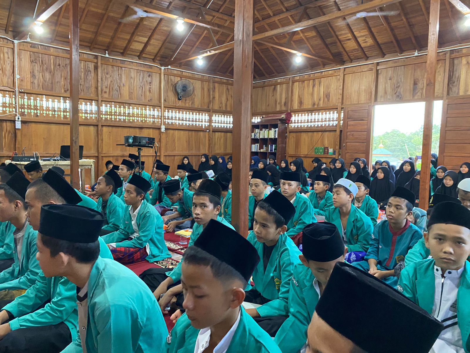 Lebih dari 190 santri dan 12 ustadz / ustadzah serta pengasuh dengan khusuk ikut acara doa bersama yang di pimpin oleh ustadz H.Junaidi Padil, S.Ag, selaku pimpinan pondok pesantren.