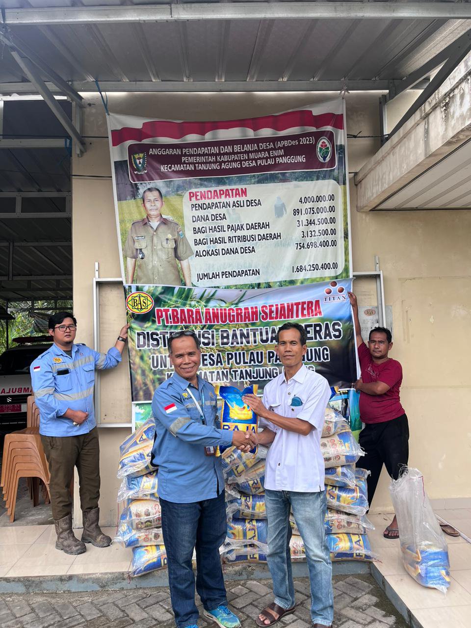 Enimpost.com,MUARA ENIM – Sebagai wujud kepedulian melalui program CSR, PT Bara Anugerah Sejahtera (BAS) kembali menyalurkan bantuan untuk masyarakat di ring 1 perusahaan Titan Group itu. Bantuan berupa beras 140 (seratus empat puluh) karung di distribusikan kepada 140 Kepala Keluarga di desa Pulau Panggung Kecamatan Tanjung Agung Kabupaten Muara Enim Provinsi Sumatera Selatan.