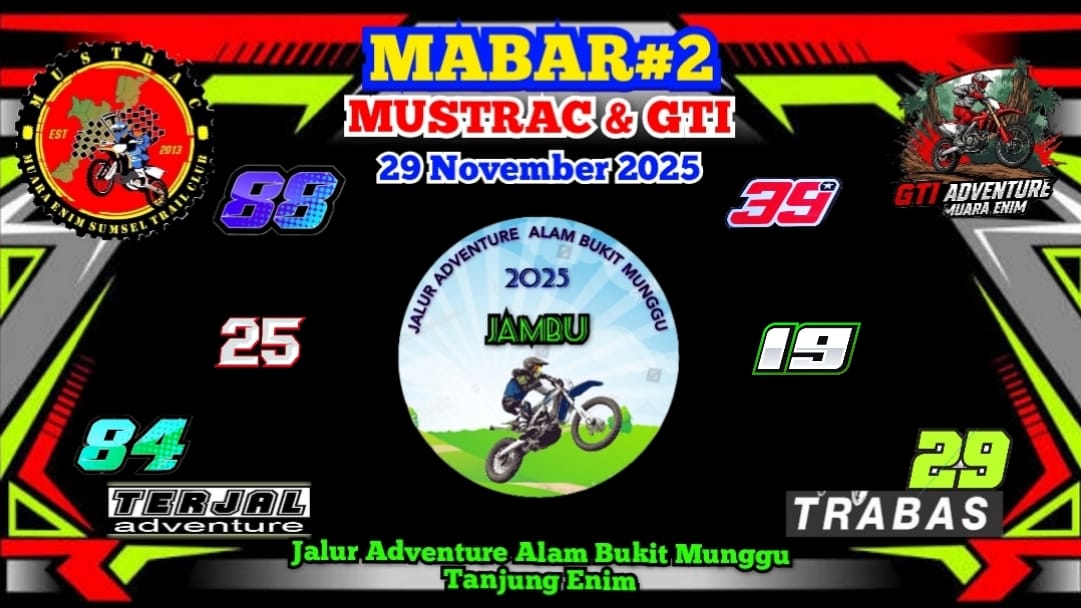 enimpost.com,MUARAENIM – Sebanyak 300 offroader menyerbu Jalur Adventure Bukit Munggu, Sabtu (29/11/2025), menjadikan Mabar ke-2 Mustrac–GTI sebagai gelaran trail terbesar tahun ini dan sekaligus debut resmi trek baru yang langsung menggetarkan Muara Enim.